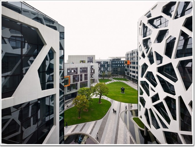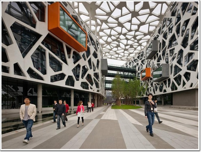 阿里總部借鑒了中東的建筑特色,樓的底部是空的,加速空氣流通。而中國式的冰花紋紗窗這是整個(gè)古典園林最突出的遮陽屏。設(shè)計(jì)結(jié)合了功能的同時(shí)最大限度地發(fā)揮其對(duì)人口的健康,福祉和生產(chǎn)力的貢獻(xiàn),以盡量減少對(duì)校園的環(huán)境影響。