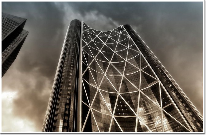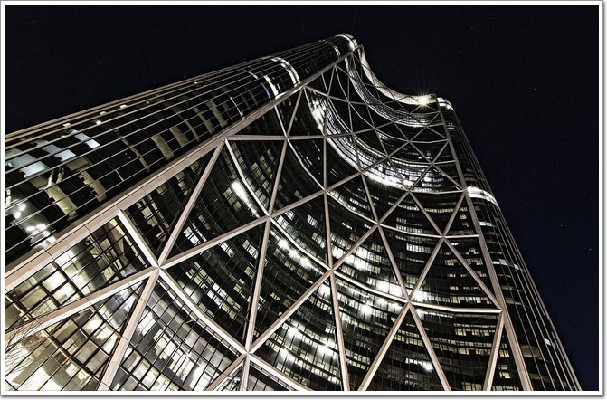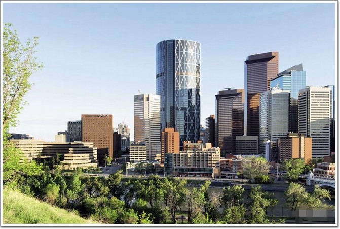 對于北美國家來說,他們并不像中國一樣熱衷于建造動輒就四五百米的摩天大廈,超過200米在北美的許多城市就是很高很高且極容易就穩(wěn)坐第一高度的建筑。而對加拿大第四大城市——卡爾加里來說最耀眼的建筑莫過于那座彎曲大廈了,因為它的彎曲程度又被稱作“弓塔”。