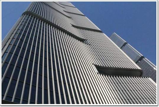 幕墻類型:單元式玻璃幕墻(詞條“單元式玻璃幕墻”由行業(yè)大百科提供)、石材幕墻等,采用側(cè)向通風技術(shù)