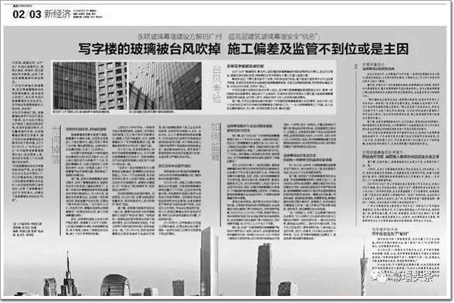 在這次的狂風中,江河幕墻在“臺風天前,一些項目經理便駐點在大樓內,提前巡視檢查,力求將風險降至最低,以確保安全。”付小兵以東塔為例從技術上進行了解密。