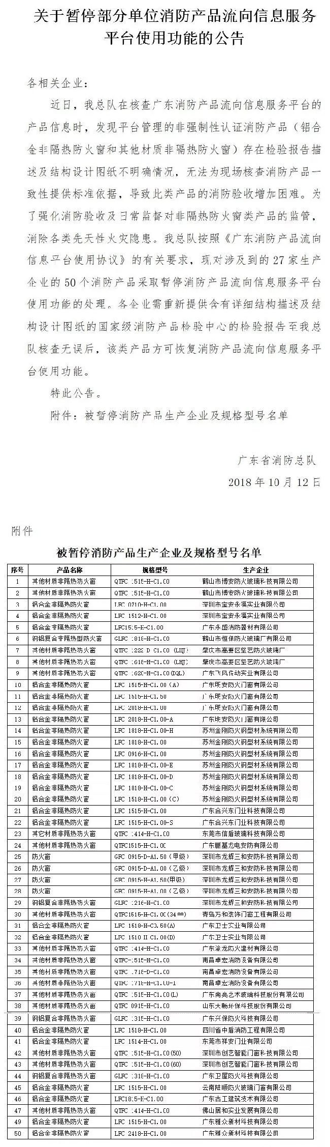 廣東省暫停部分“鋁合金耐火窗產品”的驗收工作