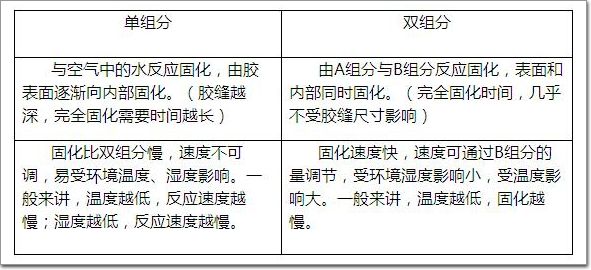 表1 單組分和雙組分硅酮結(jié)構(gòu)密封膠固化特點(diǎn)