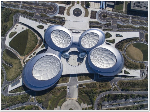 在我們看來光鮮亮麗的外表背后,實則內里大有文章,在施工中,首先是進行內部的主體建設,主體封頂后,再在主體上罩上一層弧形球體的鋼結構,最后再在鋼結構上拼裝金屬幕墻和玻璃幕墻。而在本工程中在大量運用的鈦類金屬板,因其優良的耐腐蝕性而被大量應用于建筑外墻,其原理通常是在復合板的表面用耐腐蝕性好的金屬鈦包覆,鈦金板除了擁有優異的耐腐蝕性功能外,還有一個特殊的功能——自潔功能,落灰、下雨什么的都不用怕,不管再厚的灰塵,下雨都會將其輕松沖刷掉,不用擔心灰塵積累沉淀,也不存在像玻璃幕墻需要定期清洗的問題。