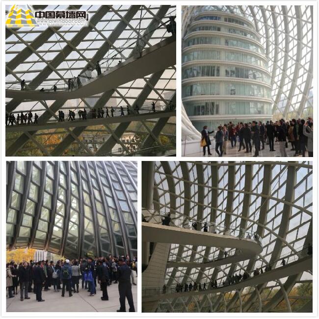 鳳凰中心項目幕墻工程真正實現(xiàn)了數(shù)字化設(shè)計與數(shù)字化加工的無縫對接,將建筑設(shè)計業(yè)與制造業(yè)完美結(jié)合,成為信息時代下,建筑產(chǎn)業(yè)發(fā)展過程中的重要示范。領(lǐng)導(dǎo)嘉賓們在組織者的帶領(lǐng)下,著重參觀了在本項目中設(shè)計師借助“莫比烏斯圈”的圖解,將高層辦公區(qū)和媒體演播室融合起來,在滿足全方位提供節(jié)目制作場地及其他配套服務(wù)設(shè)施的同時,形成了一個完整的空間和體量,獨特的建筑形態(tài)與朝陽公園自然景觀有機結(jié)合為一體、全方位的開放性,與會領(lǐng)導(dǎo)嘉賓們在其中體驗建筑設(shè)計與媒體文化相結(jié)合的獨特魅力。