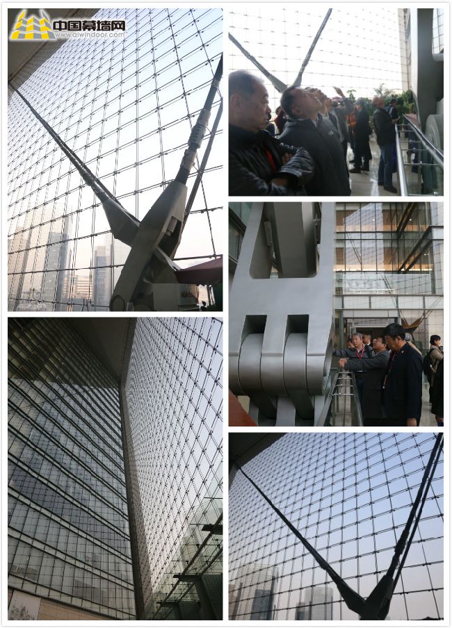 參觀活動中,領(lǐng)導(dǎo)與嘉賓們首先發(fā)現(xiàn)新保利大廈采用了大量的建筑拉索幕墻,且整體結(jié)構(gòu)造型屬于異形幕墻,與上午研討會中分享的演講內(nèi)容相呼應(yīng)。