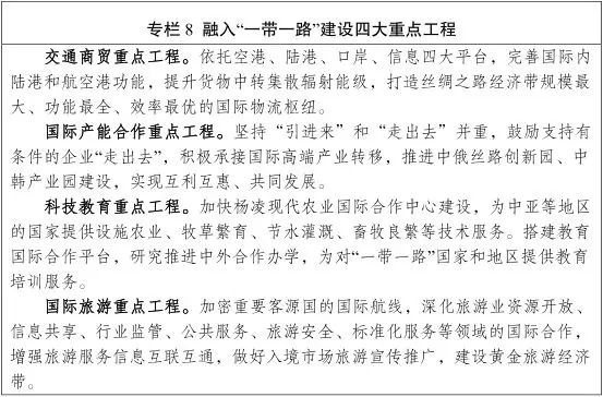 基礎設施互聯互通:富平—閻良、楊凌—武功—周至、韓城—河津—萬榮、彬縣—旬邑—長武—涇川等。