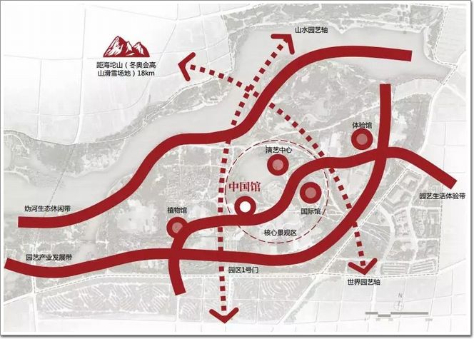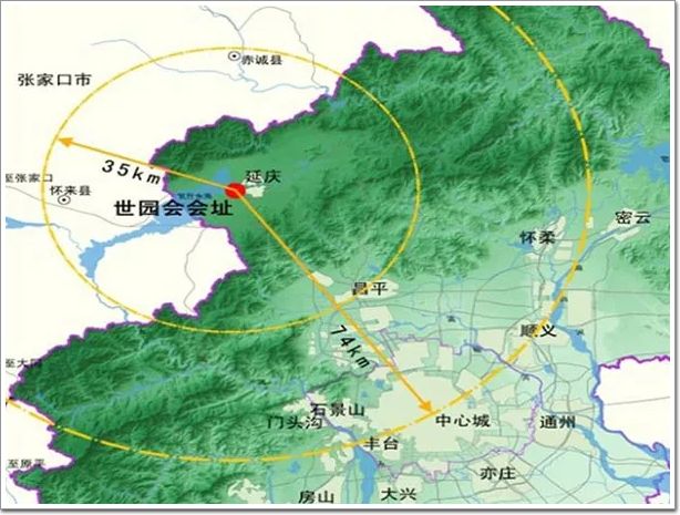 世園會園區位于北京市域西北部,距離市區約74公里,距離昌平新城以及河北懷來、赤城縣約35公里。