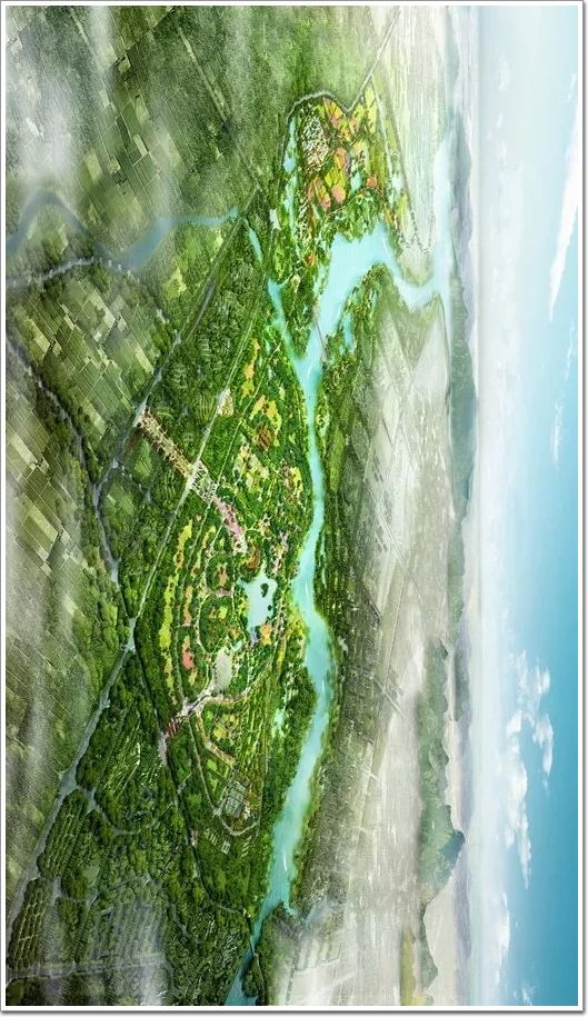 這個優雅的設計始于對園藝、農耕和自然的理解——園藝脫胎于農耕,梯田是農耕文明的獨特景觀、人與自然和諧共生的典范。以梯田為本底,延續阡陌縱橫的農田肌理,打通園區氣脈,以圓滿溫潤的輪廓融入場地,吐納四面八方的人流和景色,環山抱水,氣象萬千。