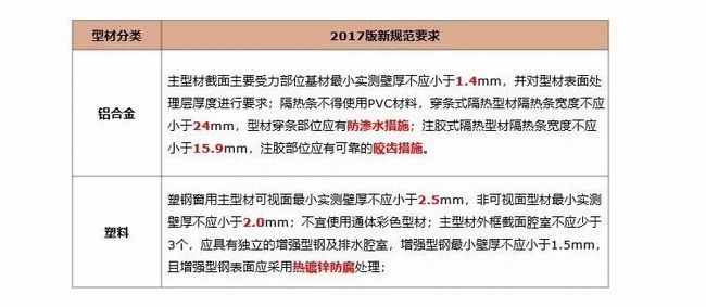◆ 對標準化外窗用鋁合金型材及塑鋼型材(詞條“塑鋼型材”由行業大百科提供)壁厚、鋁合金隔熱條、注膠等進行要求。