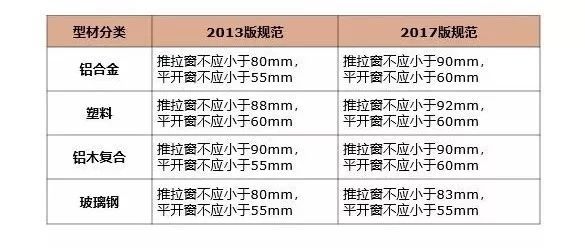 ◆ 對不同型材種類的標準化外窗型材截面寬度提出新要求。