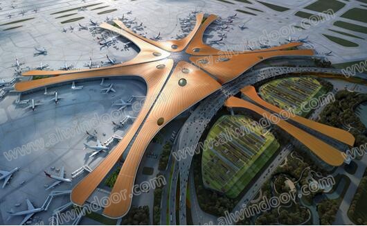 北京新機場位于永定河北岸,北京市大興區禮賢鎮、榆垡鎮和河北省廊坊市廣陽區之間,北距天安門46公里,距離首都機場68.4公里,屬國家重點工程。本項目幕墻系統設計從建筑功能和自然條件出發,充分考慮其在安全性能、熱工性能、聲學性能、光學性能上的特點和要求,利用各種幕墻技術、材料、方法、工藝創造優越的圍護功能(見圖1)。