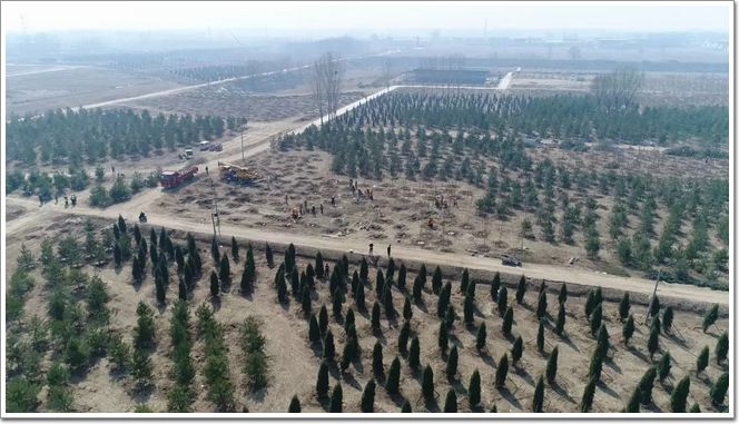 2018年3月3日,雄安新區10萬畝苗景兼用林建設項目順利開工,項目占地總面積約10萬畝,可造林面積約7.72萬畝。9號地塊春季植樹工程也同步推進。預計到今年年底,“千年秀林”面積將達11萬畝,植樹1100萬多株。