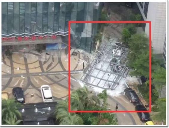 2017年,日常維護不當,海口一大樓玻璃幕墻今日上午突然墜落,砸壞至少兩輛車,數人輕傷,責任由業主承擔。