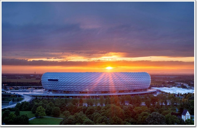 安聯(lián)球場坐落于巴伐利亞州首府慕尼黑的北部,占地面積3.76萬平米,建筑面積為17.1萬平米,場館于2005年啟用,至今已有13年時(shí)間,可它的設(shè)計(jì)和外皮在今天看來仍然沒有過時(shí),霸氣依舊,它以精巧的結(jié)構(gòu)、壯麗的外觀成為慕尼黑以至于德國的榮耀。