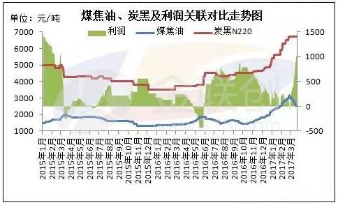 2015年1月至2017年3月期間的炭黑價(jià)格、利潤(rùn)走勢(shì)圖