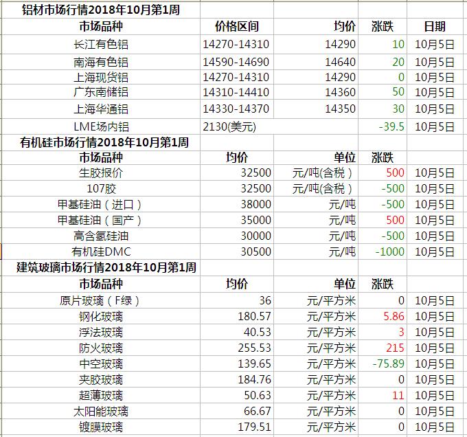 此原材料價格由中國幕墻網收集整理,僅供參考!