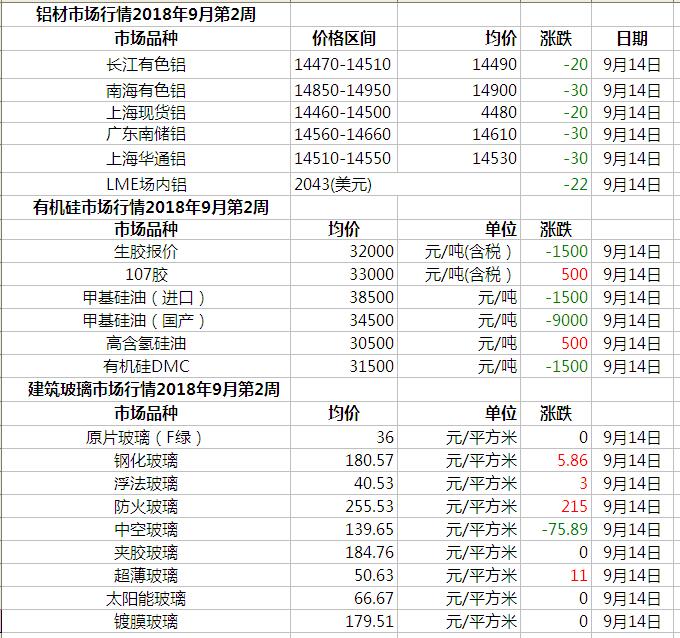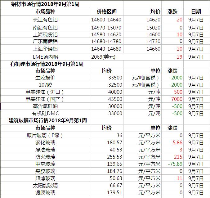 此原材料價格由中國幕墻網收集整理,僅供參考!