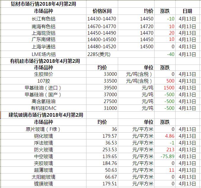 此原材料價格由中國幕墻網收集整理,僅供參考!