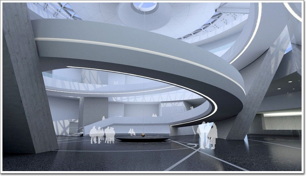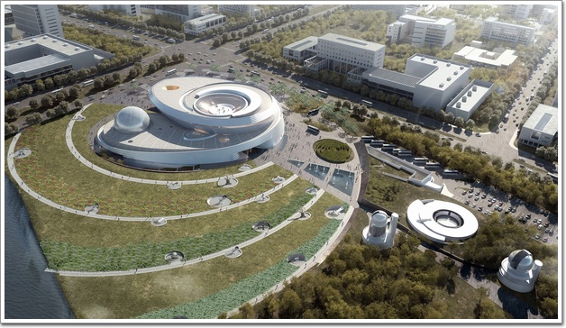 因此,圓洞天窗實際上起到了日晷的作用。天文館展示設計團隊會將時間刻度繪制在地面,這個巨大的時鐘會告訴你進館和離館的時間,真是無處不在的科技感。此外,整個天文館還將采用全生命周期BIM示范應用、雨水回收利用及生態凈化處理、太陽能可再生能源利用、導光管系統、地源熱泵等技術,是超節能、超智慧的生態建筑!