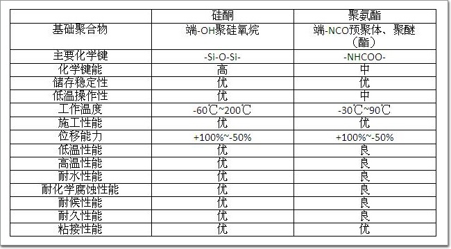 硅酮和聚氨酯填縫(詞條“填縫”由行業大百科提供)密封材料性能特點