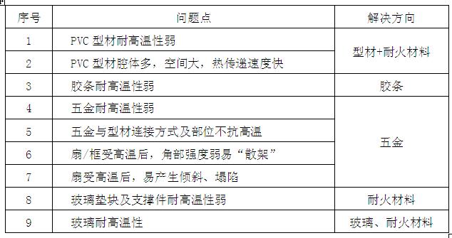 面臨的問題:①五金耐高溫性弱 ②五金與型材連接方式及部位不抗高溫