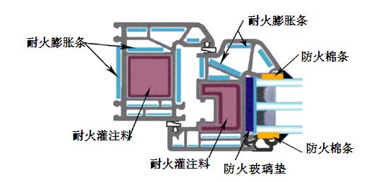 5.型材各腔室和與玻璃的空間處需采用耐火材料做好填充,通過耐火材料 的性能來阻隔和延緩火勢和高溫