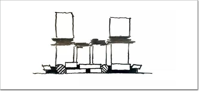 其中兩座為高層甲級辦公樓,占據了地塊的東南角和東北角,并擁有更好的地塊價值和景觀視野。商業零售裙樓橫臥在主路旁,并另有一片中央廣場和一座室外圓形劇場。