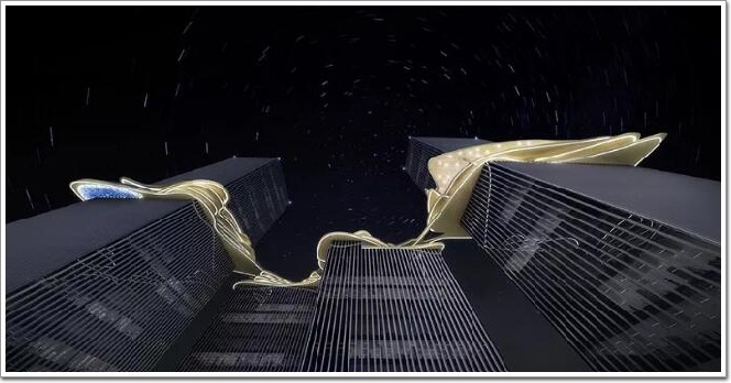 Aedas 日前發布了珠海橫琴鐵建廣場項目的設計方案及效果圖。項目由四座塔樓和其底部裙樓組成,并以“環”為核心概念,打造了象征融合、連接和溝通的空中環形通路。其標志性的“天空之橋”將地塊內的四座塔樓相連,為未來珠海提供了新的地標。