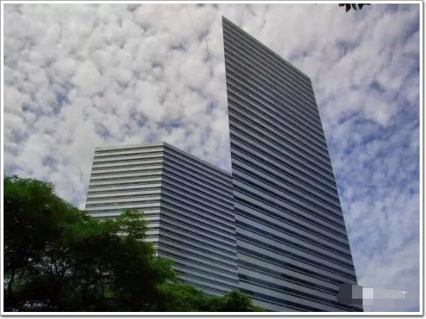 視線錯覺造成了這棟大樓看上去很“薄”,