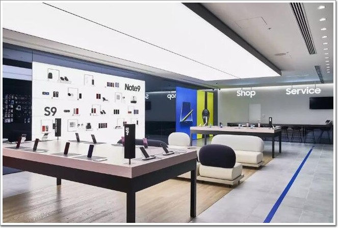 內部陳設的主題是「互動與感知」,除了展示Galaxy系列產品之外,還以充滿未來感的布局和高科技設備呈現品牌創新特色。