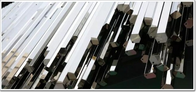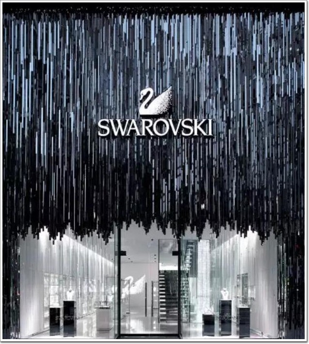 像是在 2006 年為施華洛世奇做的店鋪設計,就大膽使用了水簾一般的不銹鋼柱體,映射出閃閃光輝,營造出 「水晶森林」的感覺 ▼