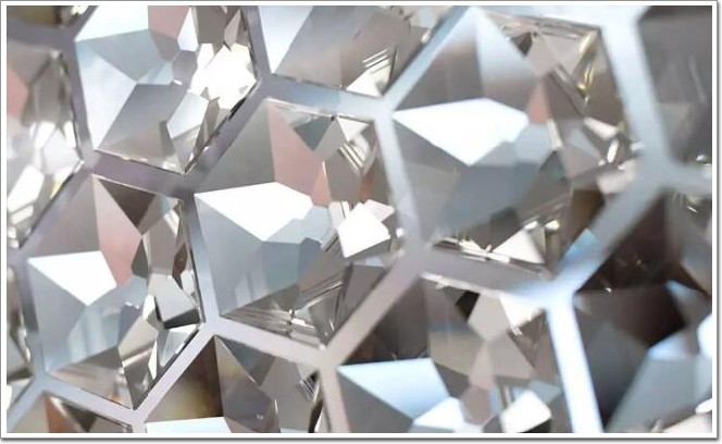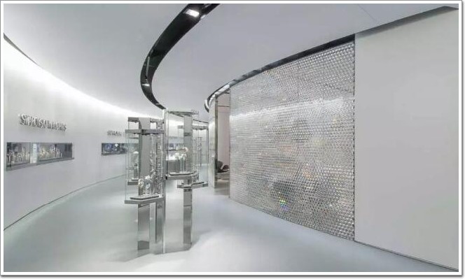 2013 年為施華洛世奇設計的店鋪,采用了六邊形反光板,在內部設置了閃爍的燈光,使墻面看起來灼灼生輝 ▼