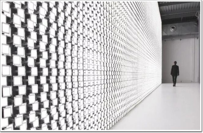 吉岡德仁使用了1000部三星Galaxy 手機,組成了通體漆黑、表面浮光掠影的「Media Surface」。