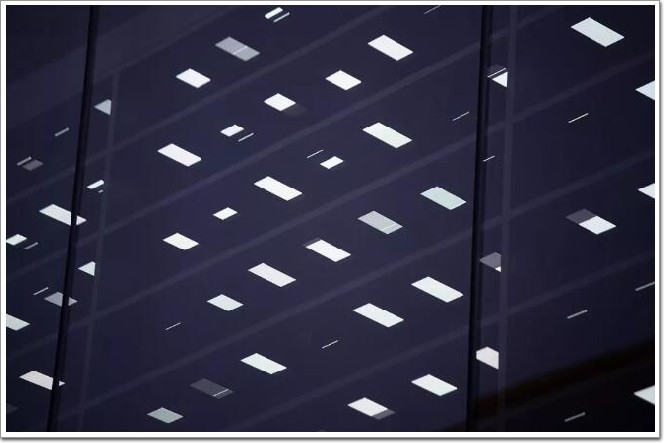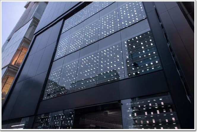 透過玻璃幕墻,手機屏幕發出的光像是飄浮在空中,未來感十足 ▼