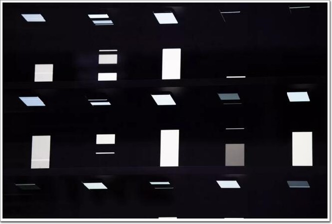 矩形模塊像會發光的玻片,完美的矩陣排列和 Galaxy harajuku 有著異曲同工之妙。