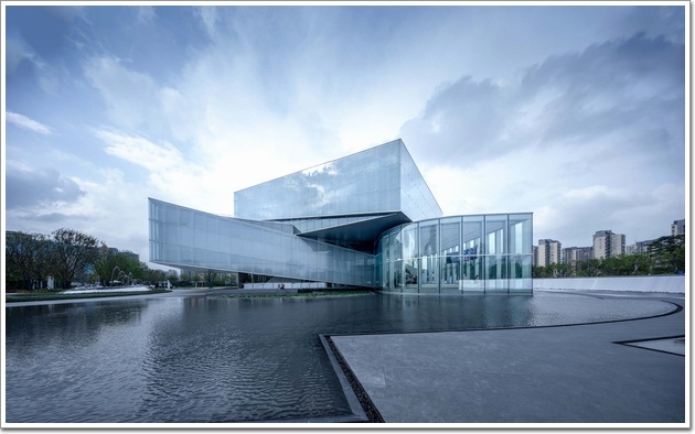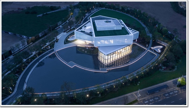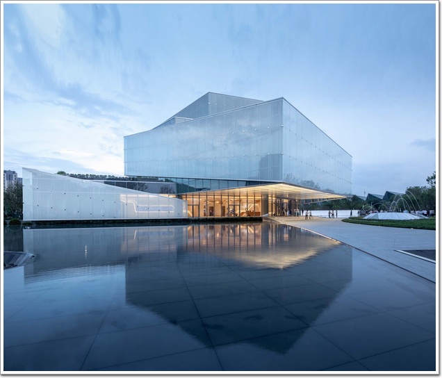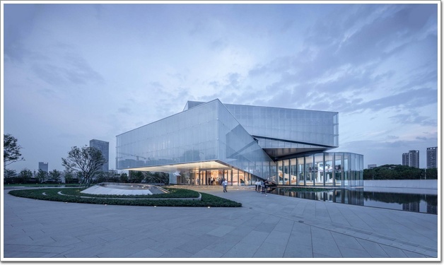 核心展覽空間“水晶展廳”嵌入其中,溫潤剔透,彰顯著公共開放的藝術調性。跟隨建筑旋轉出挑的景觀露臺構成“立體園林”,旨在營造空中游園體驗,形成室內外的氣質延續。