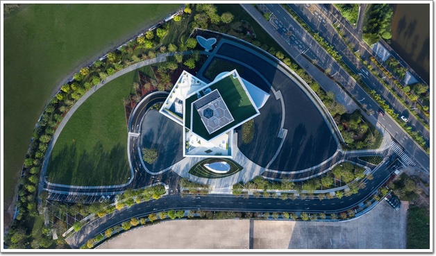 項目主體漂浮于水鏡之上,浮光掠影,相映成趣,富有張力的形體逐層懸挑,變幻朝向,與周邊場域交相輝映!奥菪磔S”順勢環繞,盤旋上升,在不同時段的光影變幻下營造出朦朧、靜謐,或恢宏、磅礴的建筑氛圍。
