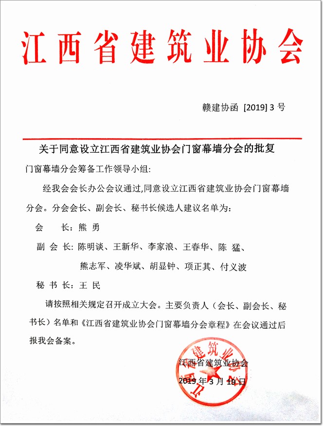 關(guān)于成立“江西省建筑業(yè)協(xié)會(huì)門窗幕墻分會(huì)”的通知