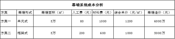 玻璃幕墻層間非透光部位建議采用1.5mm鋁板(粉末噴涂),能保證外飾效果,對品質無影響本項目綜合進度,品質和質量等方面,建議按方案二進行設計,對于5萬方的幕墻面積初步測算可減少幕墻成本200萬。