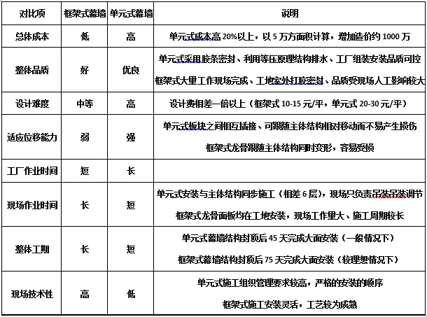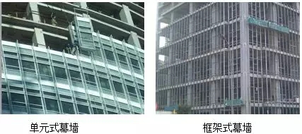 按幕墻面材分類,可分為石材幕墻、鋁板幕墻、玻璃幕墻和其他材料幕墻。以下重點介紹玻璃幕墻中單元式幕墻與框架式幕墻的方案比選。