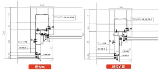 優化方案二:立柱不銹鋼型材優化為鋁合金型材外覆不銹鋼板
