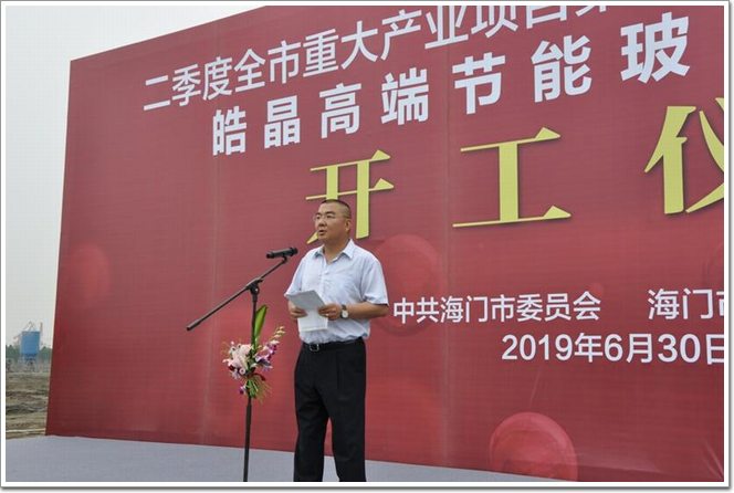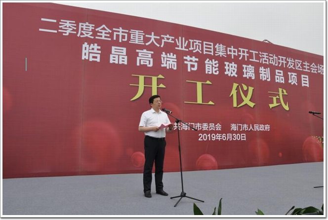 2019年6月30日海門市政府舉行二季度全市項目開工活動,皓晶集團“皓晶高端節能玻璃制品項目”工程盛大啟動,受到了極大的關注與支持。親臨現場的嘉賓有: