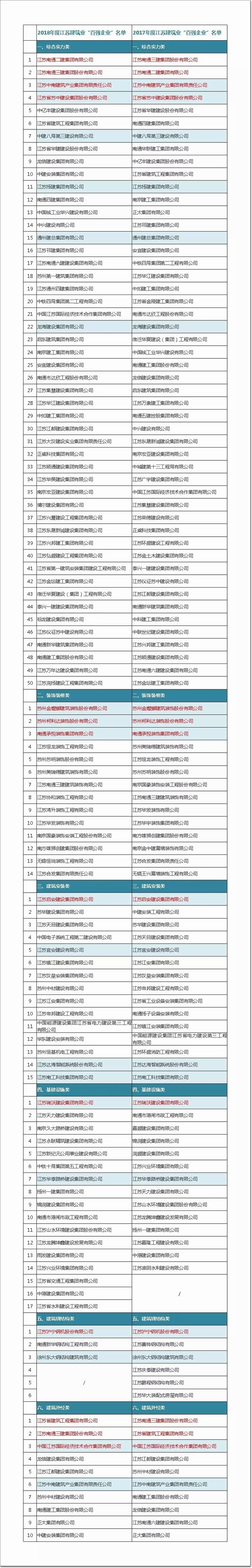 附件:2018年度江蘇建筑業“百強企業”公示名單
