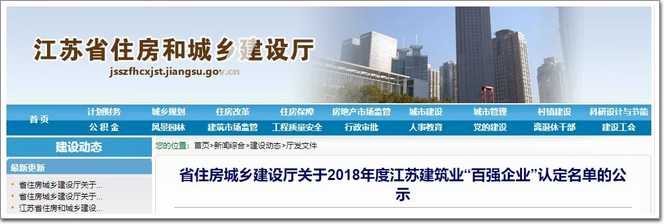 省住房城鄉建設廳關于2018年度江蘇建筑業“百強企業”認定名單的公示