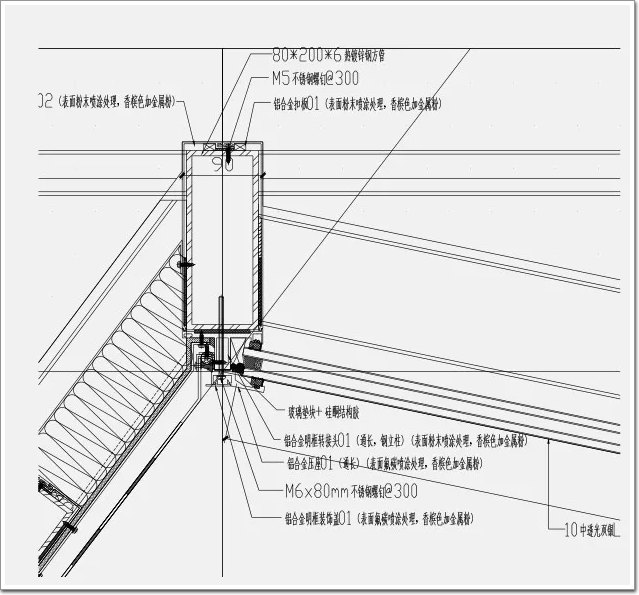 采用常規的鋁型材立柱橫梁框架式幕墻的做法,先裝立柱,再裝橫梁,再安裝玻璃。