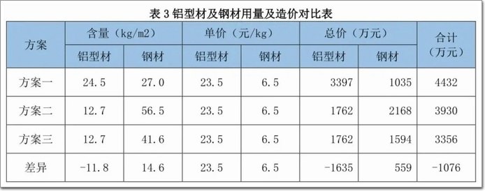 通過對型材和龍骨的兩次優化,節省幕墻結構造價約1076萬元。見下圖
