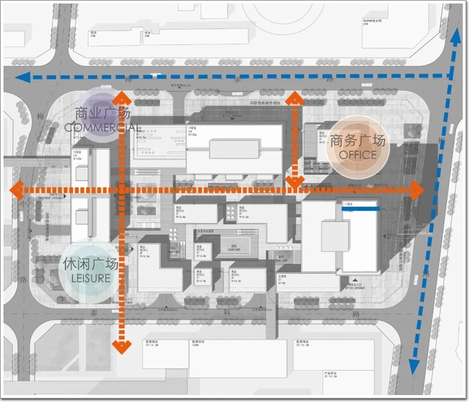 2)退讓廣場(chǎng)、內(nèi)街連通