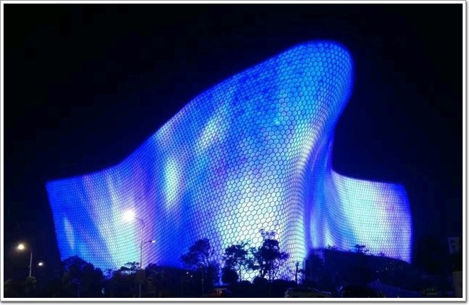 隨著光影畫面交替變幻,在建筑曲面結構的作用下,又增添了一種飄逸、靈動的視覺美感,據悉,整個大劇院用了43000多套燈具,是中國燈具數量最龐大的背投光藝術作品。這些燈具與建筑幕墻結構完美結合,隱藏在幕墻外層六角形連接桿內側,朝白色里層幕墻投光,在技術上為國內外首次在非規則曲面建筑上大規模使用多點式間接光的光藝術作品。