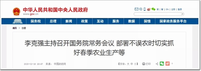 國務院總理2月18日主持召開國務院常務會議,部署不誤農時切實抓好春季農業生產;決定階段性減免企業社保費和實施企業緩繳住房公積金政策,多措并舉穩企業穩就業。