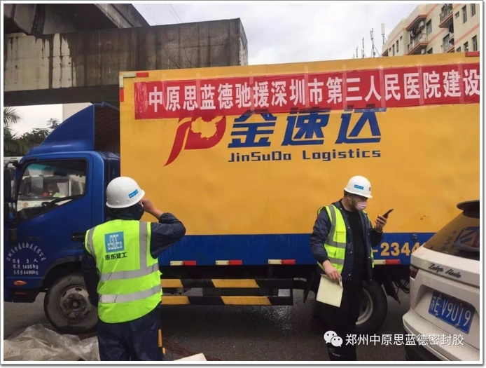 鄭州中原思藍(lán)德高科股份有限公司在嚴(yán)格按照鄭州疫情指揮部的疫情防控要求復(fù)工后,公司高層領(lǐng)導(dǎo)復(fù)工當(dāng)天首先考慮現(xiàn)場(chǎng)用膠需求,在生產(chǎn)、物流、檢測(cè)、科研的通力協(xié)作下并克服疫情期間運(yùn)輸困難專車將產(chǎn)品運(yùn)抵現(xiàn)場(chǎng)。